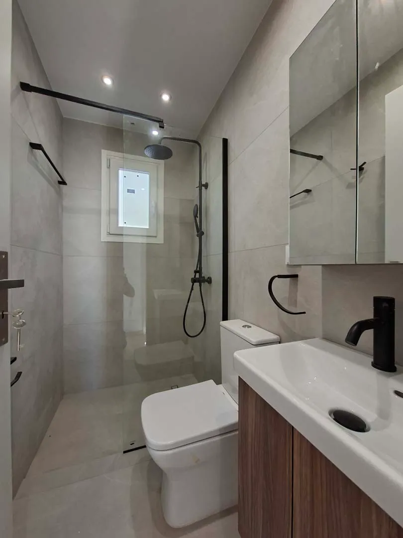 - Walk-in ντουζιέρα με γυάλινο διαχωριστικό