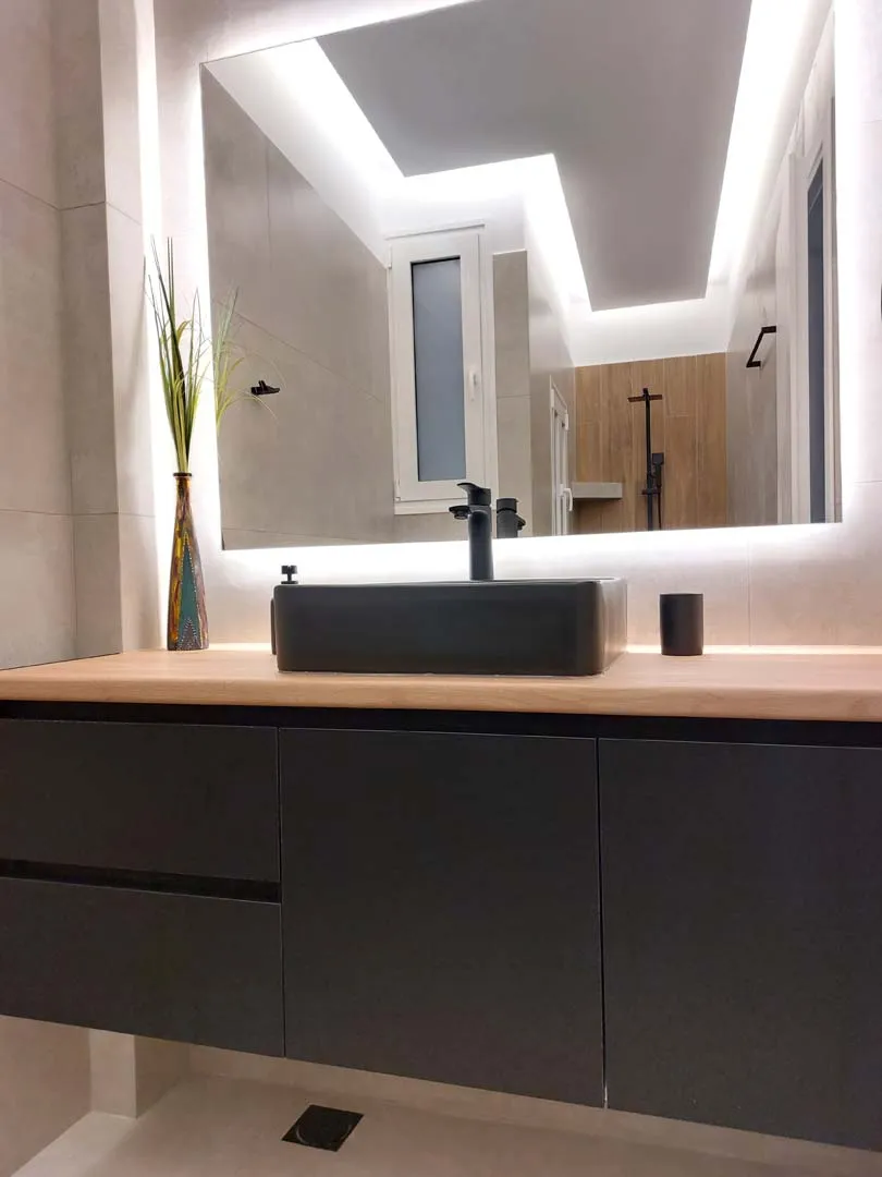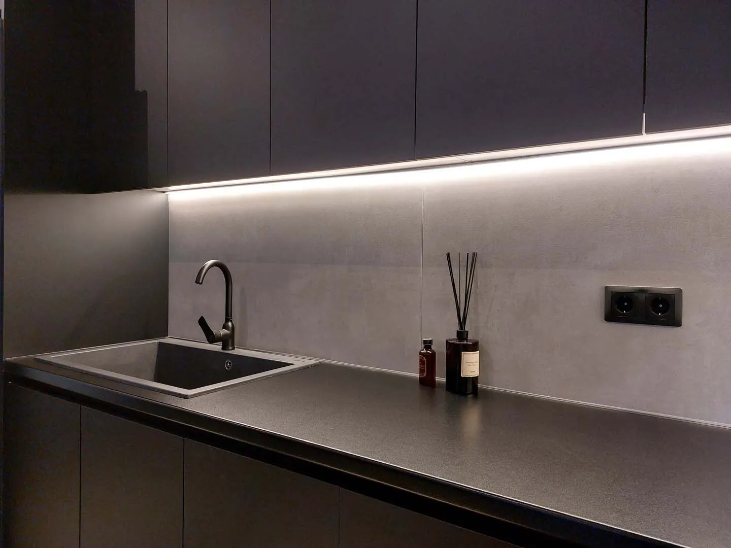 - Κρυφός φωτισμός LED κάτω από τα ντουλάπια